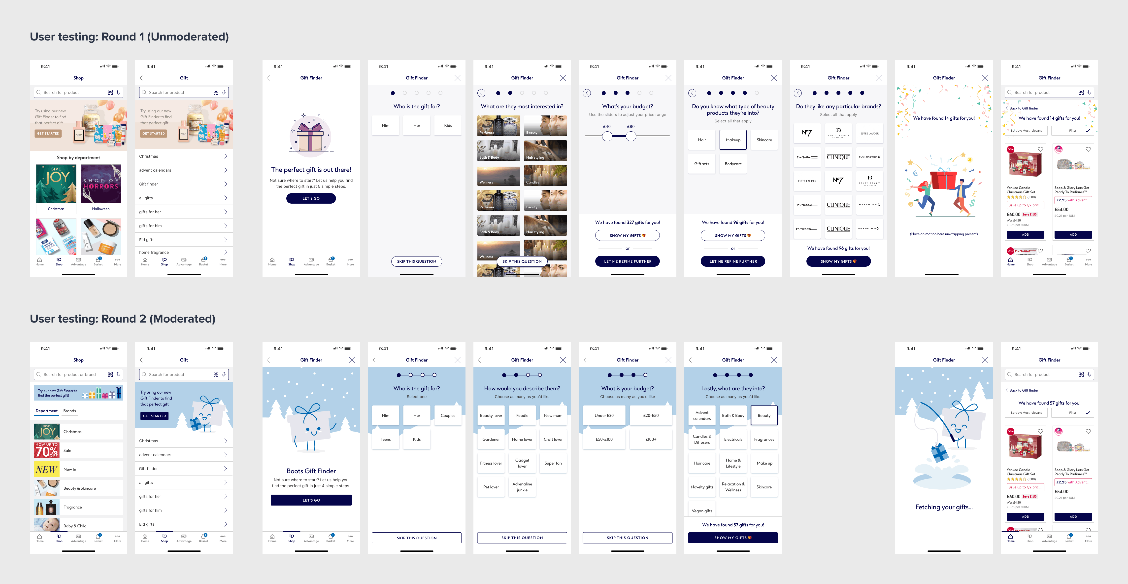 The concept was validated through testing and later adopted by the web team, launching as a live Christmas gift finder on the website.